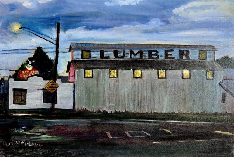 from the series "Our Town" - iconic paintings of typical American town. Acrylics on canvas mounted on wood.