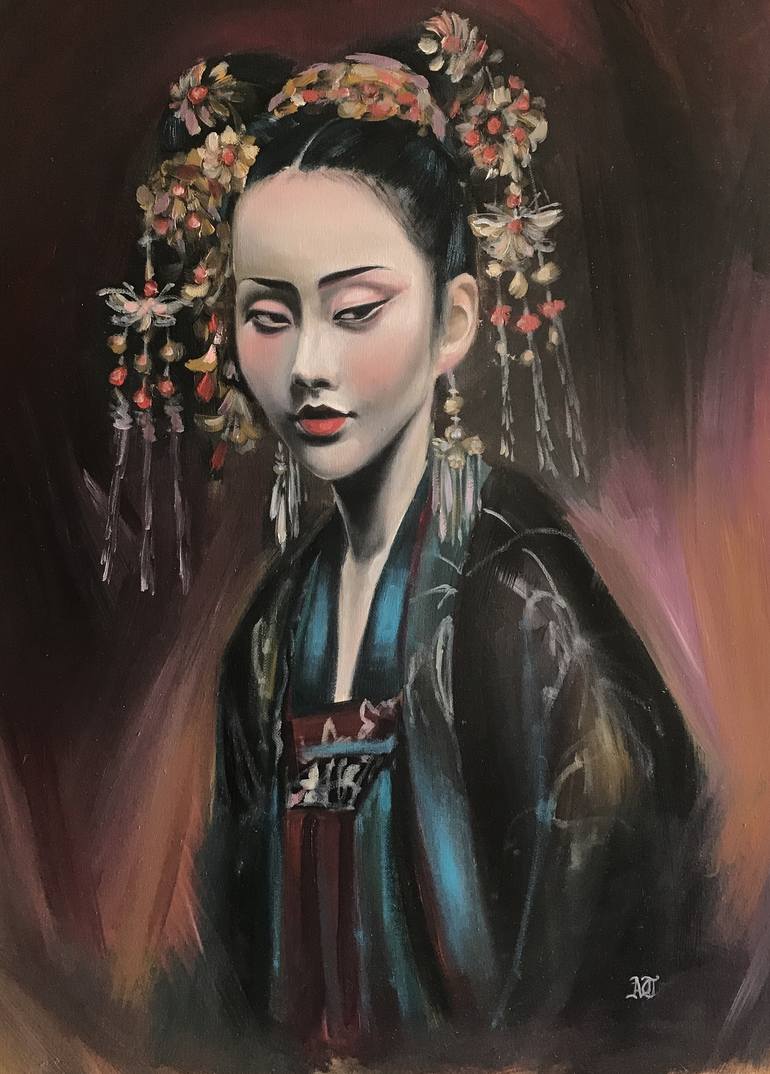 Original oil painting on canvas 'Hanfu girl portrait' • Painted in 2020 • Artist - Anastasia Terskih • Comes with a certificate of authenticity • Unframed Height: 70 cm / 27.5 inches Length: 50 cm / 19.6 inches