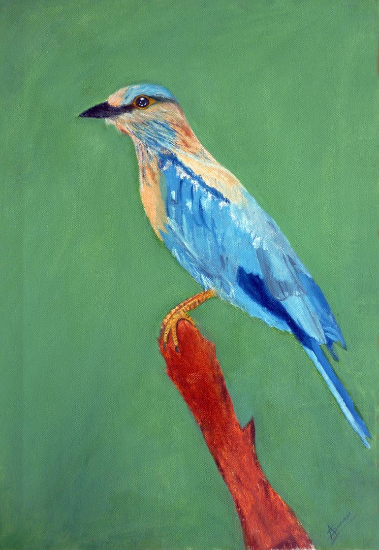 This is an oil painting of one of my favourite bird Indian Roller or Blue Jay, in Hindi it is called "Neelkanth" means blue throat. View this bird is very very Lucky.