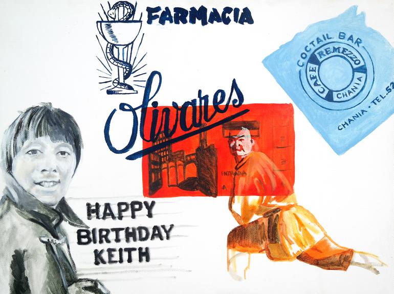 Painted memories. Seemingly random images made up of magazine cuttings, ticket stubs, advertisements, labels, stamps, letters, photographs, etc. New narratives appear as images compete and jostle for the viewer's attention