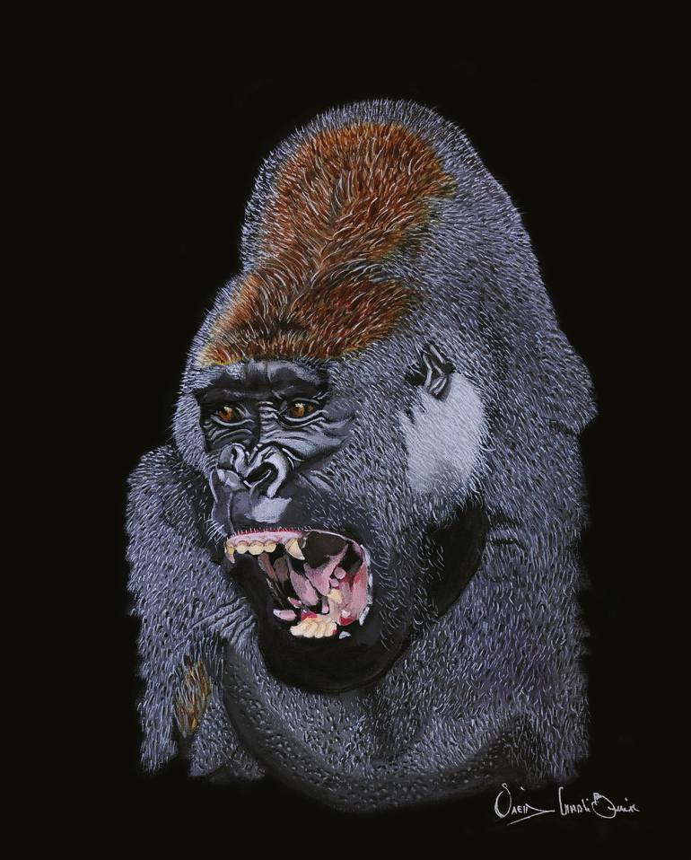 Being an animal lover, animals always give me inspiration to paint. Here is a happy, laughing gorilla painted with acrylic.