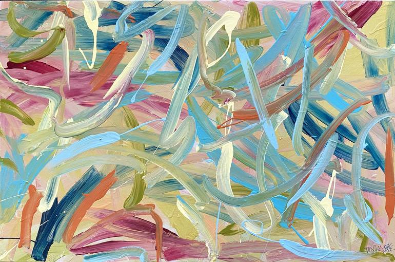 Bold brush strokes applied to create a work of celebration, paint, colour and movement.