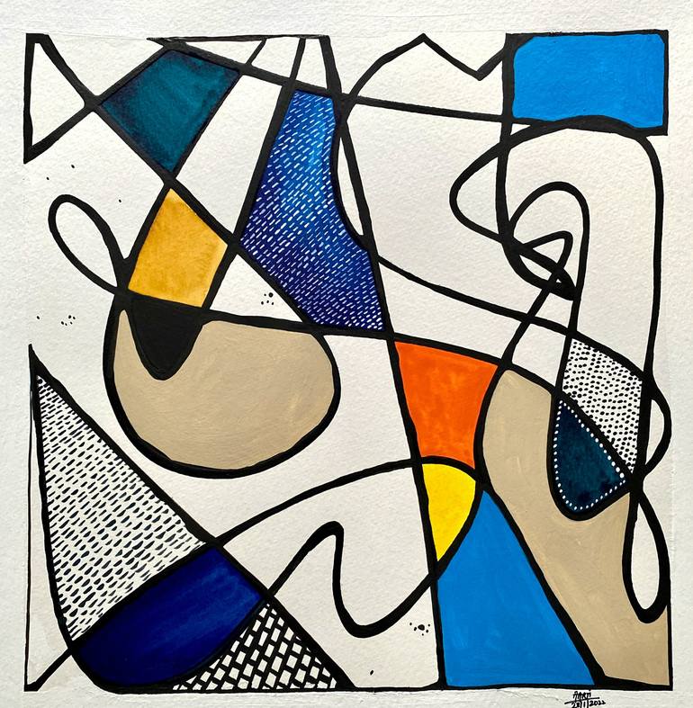 hank you for looking at my beautiful painting. This quirky abstract painting is created using vibrant colors, lines and patterns and is free of any representation. It marks pure abstraction in totality. The bold black lines and the white spaces interlaced with colors draws your eyes in making it an ...