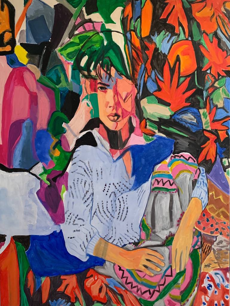 Statement My work explores the deep connection between humans and nature, rooted in my long-standing interest in folk traditions and their environmental wisdom. I am inspired by how traditional cultures understood nature as a sacred force connected to God, the universe, and spiritual well-being. Folk heritage carries a deep respect for life and all living beings, while offering protection, identity, and a sense of belonging within the community. My interest in folk tradition goes beyond visual elements: it represents a way of thinking that emphasizes harmony with nature, responsibility, and continuity between generations. Through expressive human figures, my paintings unfold in an illustrative and powerful style, reflecting the relationship between people, their environment, and cultural memory. Folk costumes appear as symbolic elements in my work, alongside visual influences from the 1970s and 1980s, which strongly shape my artistic language. My name is Eszter Szabó. I was born in 1979 and completed my studies as a decorative painter at the B.D. Art School in 1997. After graduating, I worked in my profession for several years, including the restoration of frescoes and historic walls in some of the largest archives in Hungary, collaborating with a highly respected restoration company.