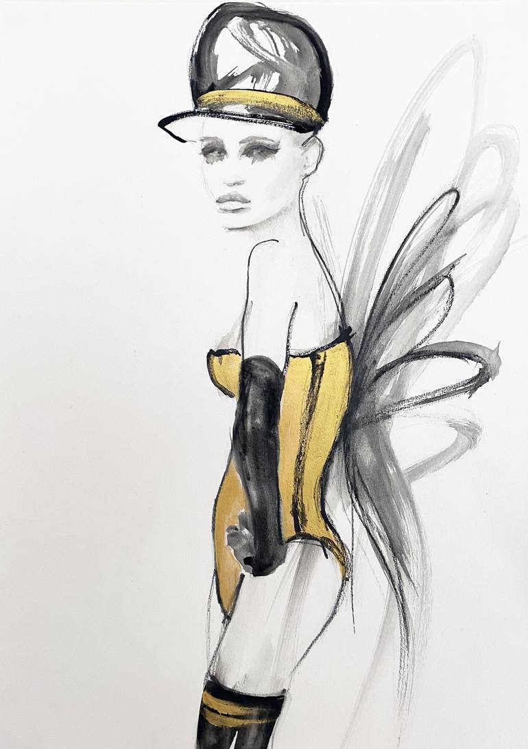 Harper in black and gold - watercolour, pencil on paper. Original by Fiona Maclean. 16.5in x 11.5in Comes with a certificate of authenticity and a handwritten thank you note. Fiona Maclean was chosen as an ‘Artist to watch’ and amongst a strong emerging talent of Artists in the ‘One to Watch’ seri...