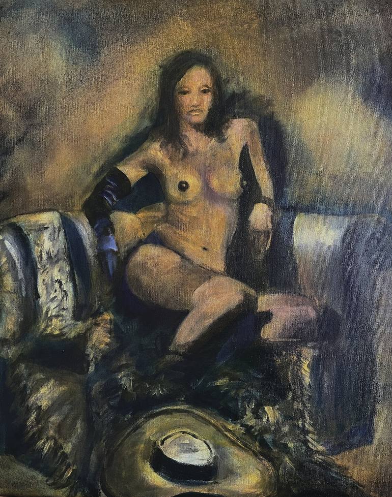 Working from a live model, each painting was started with a quick impression or gesture drawing using marker with black and white acrylic paint. Then layer after layer of oil paint and Galkyd was applied to the canvas. This painting is from an exhibition, Figuratively Speaking, 2023 at the Orange C...