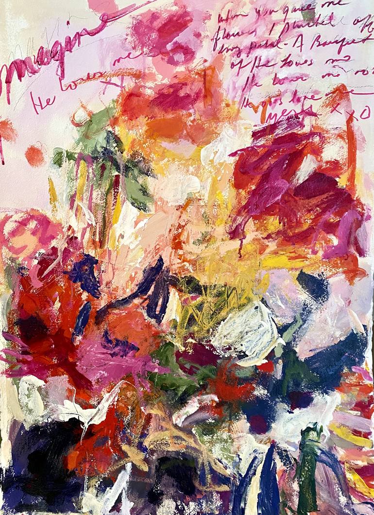 Cy Twombly, who is one of my favorite artists was my inspiration ...the abstract blossoms and mysterious writing makes this painting an absolute joy to gaze upon .. come take a stroll through my garden ...