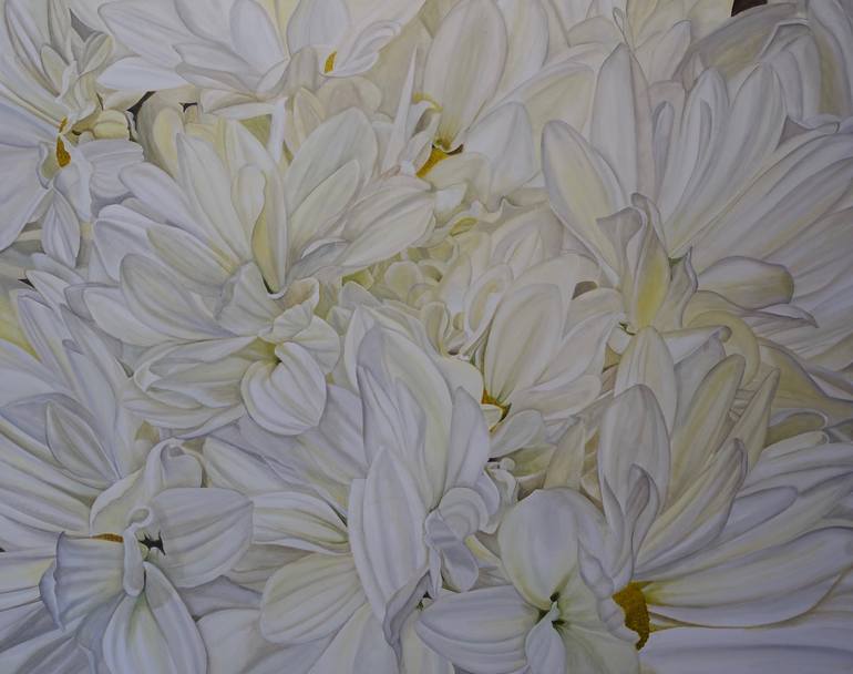 I am taken with flowers as they are transformed somehow when painted by the human hand. In the process of painting them, I come to see the translucency of the petals, and their position next to one another in almost abstract terms. As designs and patterns emerge in ways not apparent in the real-lif...