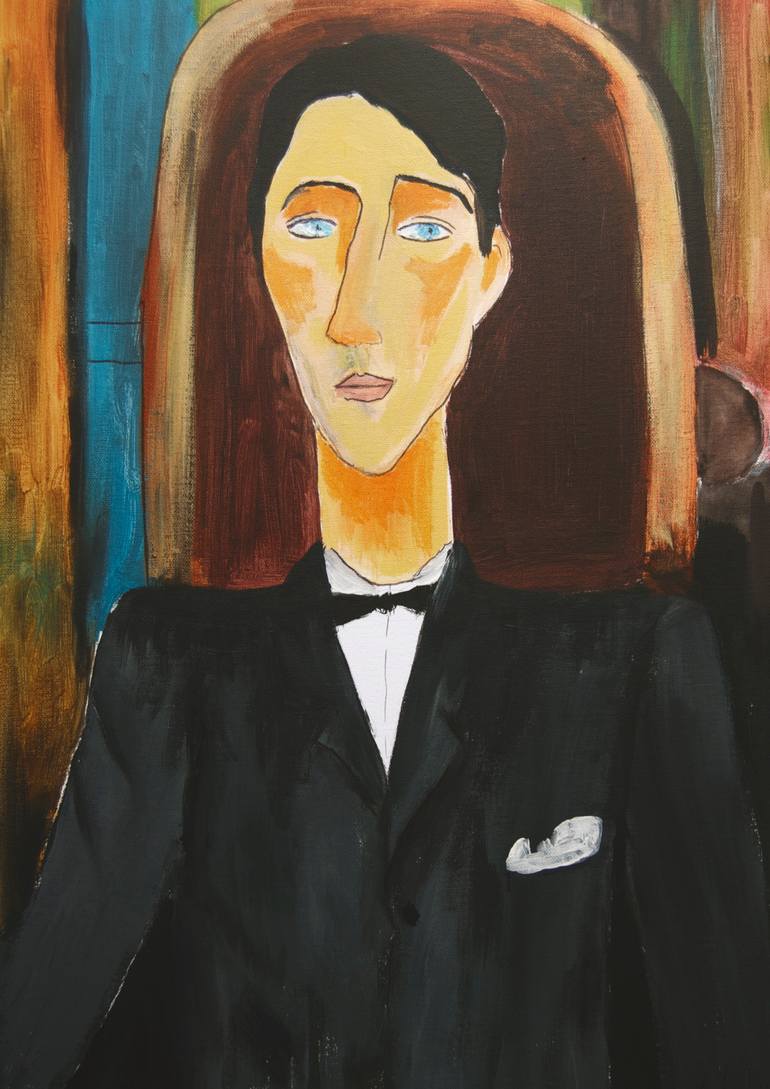 This man many years ago posed to one of the most beloved painters. Today he is rejuvenating here on this canvas. Acrylics on canvas.