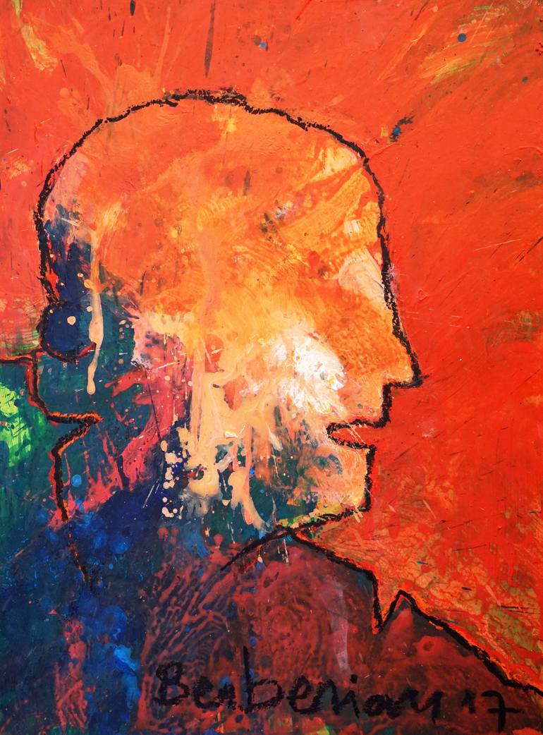 Many of us see the artist as a bohemian living by his wits and deviancy, on the fringe of society, without spouse or family life, drinking, on drugs, and eating the soles of his shoes. Michel Berberian use to work in advertising, to live in a single family home with wife and children, he has consumed but the minimum of Côtes du Rhône so as not to pass for a killjoy, and uses his soles to walk on. Many see the artist as a backward person, or one who is not in tune with a materialist world, simultaneously with the simplest motivation and the most complicated methods. Michel, however, drives his sedan swiftly, knows how to make a business plan, writes commercial sales blurbs, is installing the latest version of Internet Explorer on his i-Mac and an automatic watering system in his yard. As a matter of fact Michel, as opposed to certain painters or rather, to our views of them, is well adjusted. And yet, he is painting. He paints running men (L'Homme Courant, Man Running, commonplace and oh so current), big birds that fly, lop-sided faces, women rising up. So many people who evolve in the midst of a complex magma of vivacious colours, (Les Mots d'Estomacs, Tummy Words, quadriptych painted on the instructions of a pharmaceutical lab). But if Michel is indeed mastering the complexity of the system, it's clear that he is also suffering from it. In his paintings, the characters have been gnawed-on, are nearly harrowed by the magma, (L'Homme en Colère, the Man in Anger, "not getting indignant equals abdicating"). The running man is in the midst of a bombardment, the heads seem to be irradiated, and the bird appears to be vitrified in flight. Michel attempts to escape himself, in vain: the man is running in a conflagration which extends beyond the painting's frame, the bird is still gliding but another hail of missiles will pull it to pieces, the face has "lost its head;" as it were, and the woman rising up into the air is but a crucified body. It is said that "true art is not decorative" and we tend to think that artists cannot exist without suffering. Michel Berberian expresses a particular kind of suffering: the suffering of the alienation to which we are subjected daily; an alienation which, contrary to dictatorships, is less on our outside than inside of us, such an intimate alienation that it is difficult to express... unless you are an artist. Michel Berberian's paintings, often in big formats, use acrylic and soft lead pencil.
