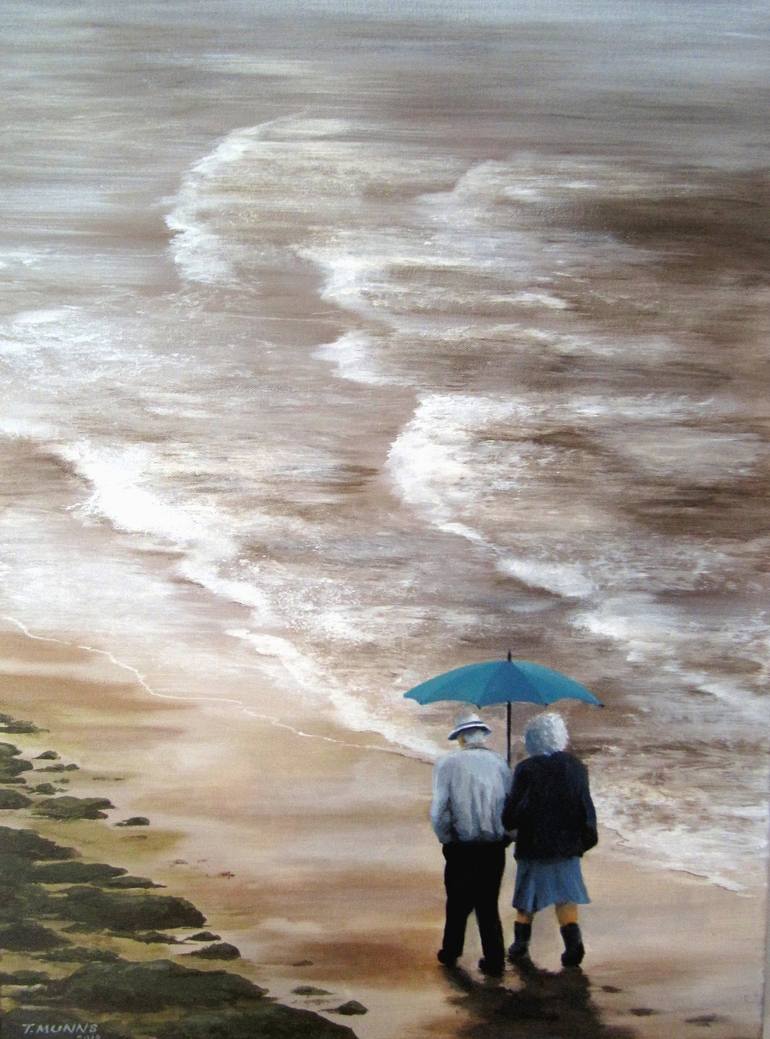 Heading Home shows the enduring love and friendship of retired couple Fred and Joan, who feature in a number of my artworks. Here they set off for home after the rain comes down during their daily afternoon walk. I paint a lot of seascapes and beach scenes as I enjoy the painting challenges and the...