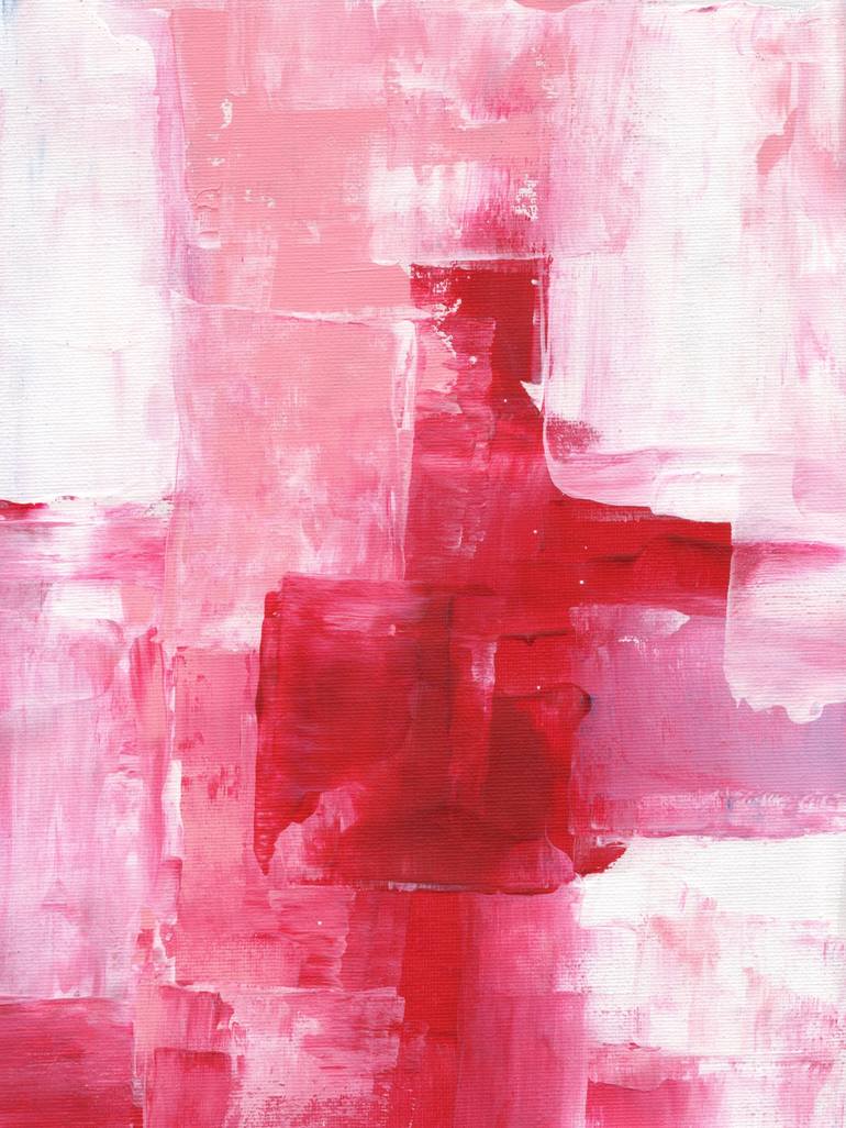 ‘Heart Beat’ Abstract Painting Original Art Pink Red Colors Palette Knife Modern Trendy Monochromatic Fun Colourful Pastel Romantic