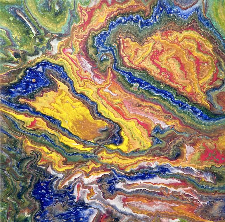 Immerse yourself in the vibrant energy of "Heart of the Planet" by Yurij Pankevich. This 65x65 cm 2024 masterpiece bursts with dynamic swirls of yellow, deep blue, fiery red, and lush green, creating a stunning representation of Earth's vitality and spirit. Each brushstroke flows with life and inten...
