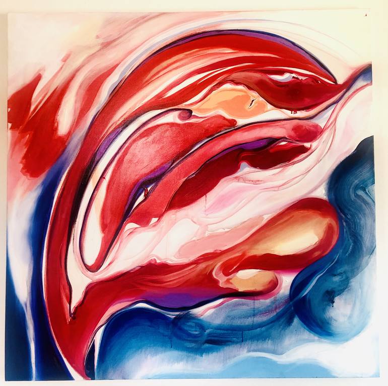 Ruby Vartan allows viewers a peek into her inner world through painting. The merging of figuration and abstraction is where their gaze is then focused. She explores emotion and sensuality in all their physical and emotional glory. The hallmark of her work is its revelry in abstracting the female form. These are simultaneous self-portraits and cross-cultural signifiers of feminine essentialism. While wounds and trauma are represented in the abstract, her layered compositions render them as part of a greater journey toward healing and redemption. The ultimate aim of the work is to investigate the notion of a vital life force in a constant state of renewal. Her studio process is inclusive and experimental. She will tear the canvas one day, sew it the next, mix turmeric into pigment, whatever it takes to find that precise resonance of closeness and discretion that her work embodies. This physicality and rough handling contrasts the preciousness of the intimacies she reveals. She is not bound to one pictorial method; the fierce liquid power of her experience thrives in an endless refreshing of mediums. Telling her own story through her art, she viscerally draws viewers into a world filled with volatile honesty and fragile self-expression.
