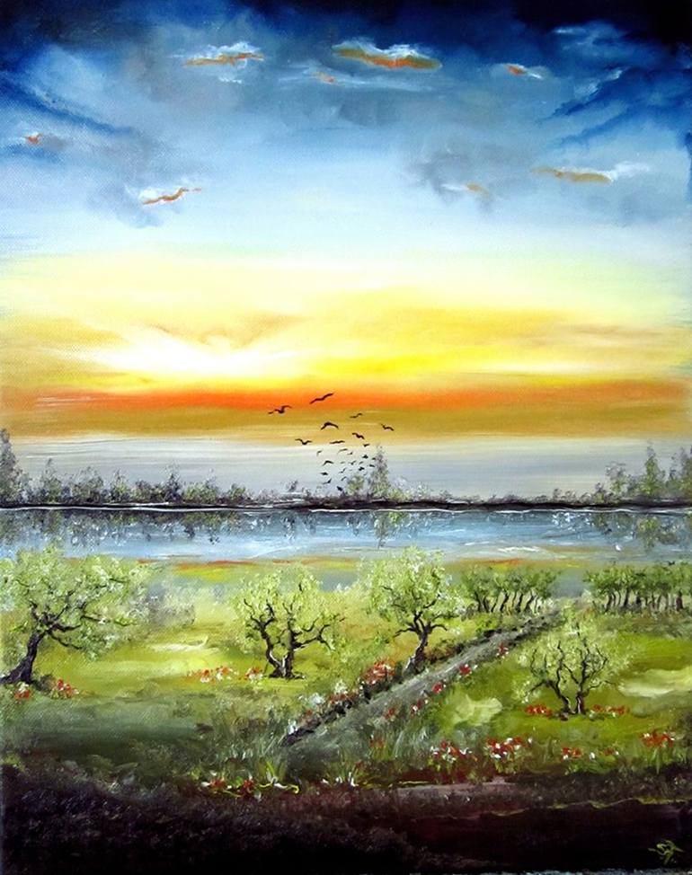 I am born in Germany and living now in France - enjoy the calm life with my family here very much. Can not remember when i start painting...., always insperated by the nature are my pics mainly in oil on canvas, sometimes i use Acryl and paint with a lot of LOVE! I use to say - nature is my church, here i find always a great communication to MotherFatherGod and all beeings who exists, because all exists. So i am very spirituell. I also paint for demand.