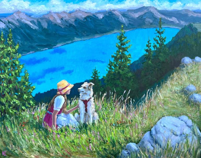 It is the perfect place to be in the Swiss Alps. Oil painting.