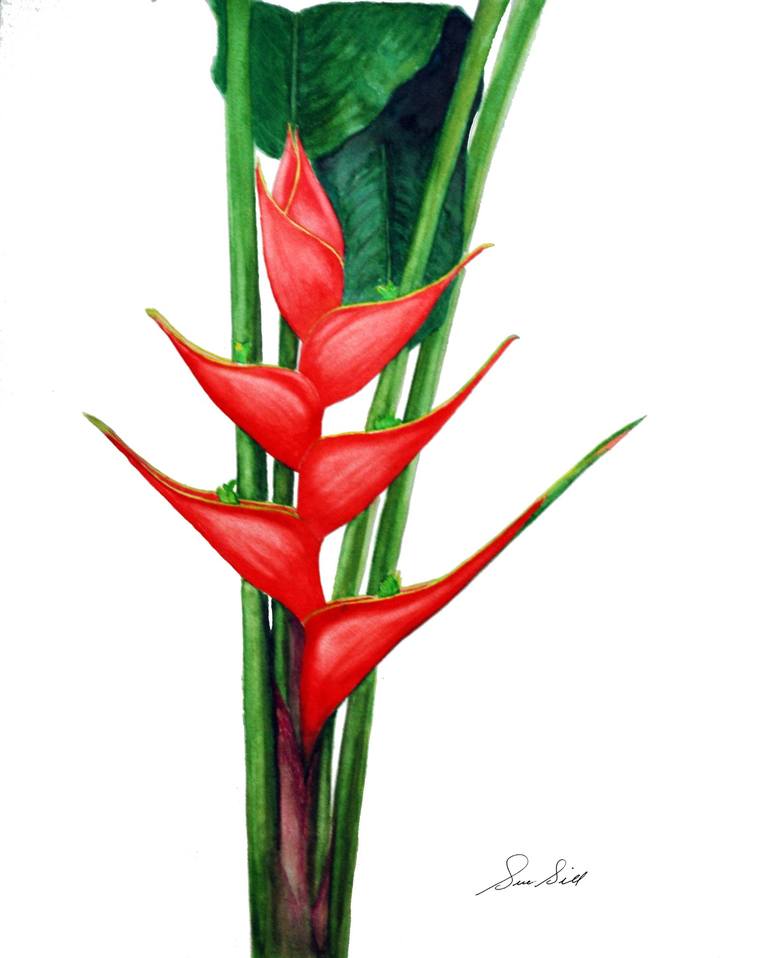 Heliconia stricta - known by the common name of Lobster Claw - is a tall clumping tropical plant grown all across the American tropics. A photo I took in a garden in Costa Rica was the reference for this painting. This painting would spice up any sunroom, giving it a tropical flare. Along with ...