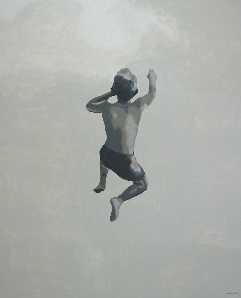 Seeing a child jump into the water is something that fascinates us. It is pure happiness. This work seeks to capture that moment. All in ocher, brown, vanilla and black tones. The look is reminiscent of an old photograph.