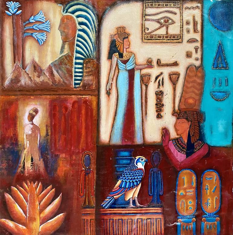 Every stroke in this piece carries the weight of an ancient world, a civilization where gods walked among kings and symbols held the power of eternity. The Eye of Horus watches over this sacred narrative, guiding the soul through the mysteries of time. The figures, both regal and spectral, exist in ...