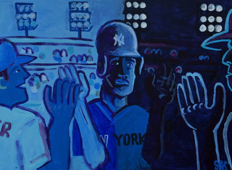 acrylic paint on high-quality "gallery" style canvas 24 inches wide by 18 inches tall There's that strange time in an afternoon game where the shadows become very harsh and the field is divided into two zones: the light and the dark. I love watching games when they enter this period, though I nev...