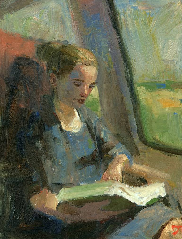 High Speed Rail is part of a series depicting the figure reading. I use subdued colors and loose brush strokes, as in most of my paintings, in order to create the mood and feel of spontaneity. Art buyers may see a symbolic reference to prominent 20th century American painters like George Bellows, Jo...