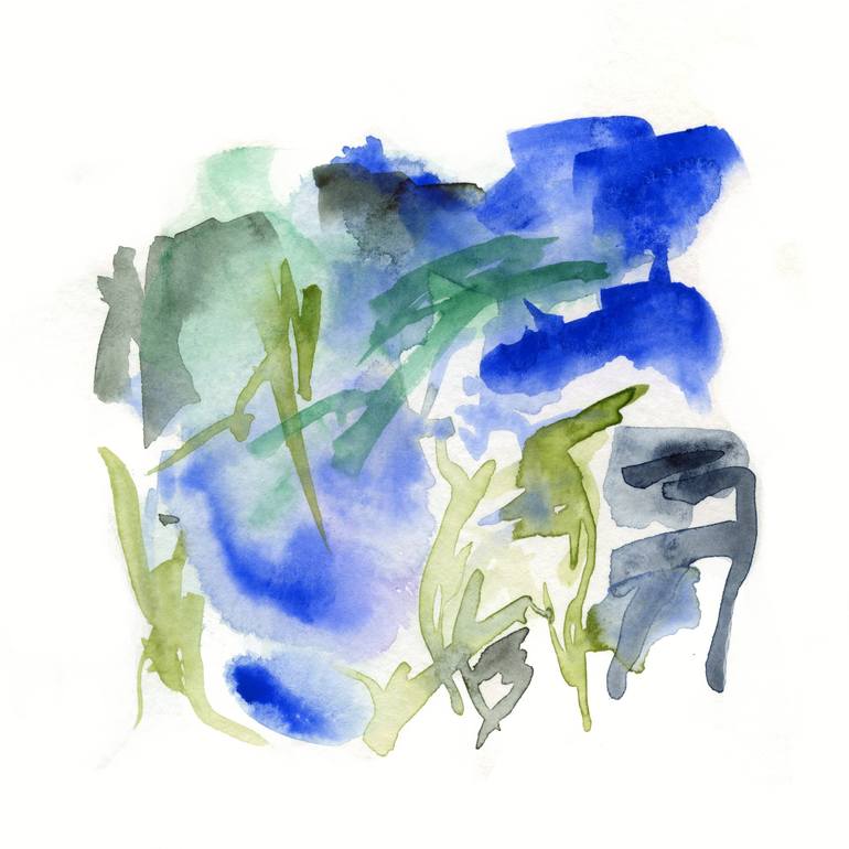 High Tide An original watercolor abstract painting 12" x 12” Modern expressionism, in greens, indigo, and blue. This paper is 100% cotton watercolor paper, acid free archival materials used. Artist: Victoria Kloch This painting will be sold without a frame. Prints are available