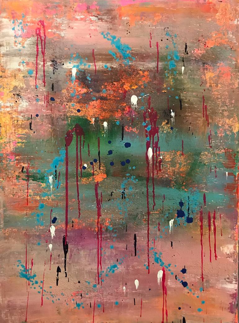 When I paint, I lose myself in the movement, in the music, in the textures. Each time, my vibrations are instantly high...but with this piece, just by looking at it on the wall makes me smile. The colors bring an immediate sense of joy. I connect with a lot of my paintings, but this one by far pulls...