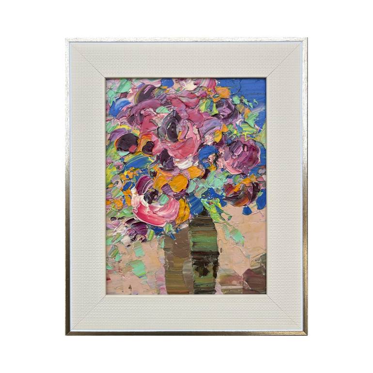 In this oil painting, I've unleashed a vibrant swirl of emotions through bold, expressive brushstrokes, capturing the fleeting beauty of flowers. Each stroke is charged with the passion of the moment, the colors clashing and harmonizing in a visual symphony. This artwork brings a splash of life and ...
