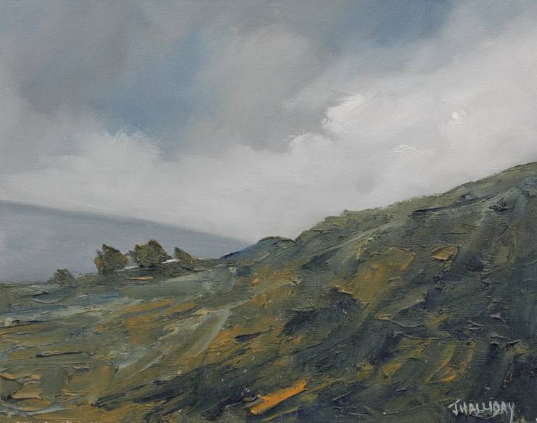 John Halliday's love of the coastline and the rugged countryside is evident in his paintings. The artist, who resides in the United Kingdom, aims to capture an impression or a feeling in his landscapes and seascapes, as represented by dramatic skies and weather. Halliday feels that by using fewer brush strokes, his pieces convey more emotion. He creates using oils on canvas.