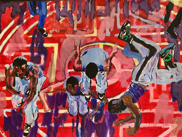 Break dancers, people who understand hip-hop culture.Acrylic painting on paper, I will send it in a simple glass frame.