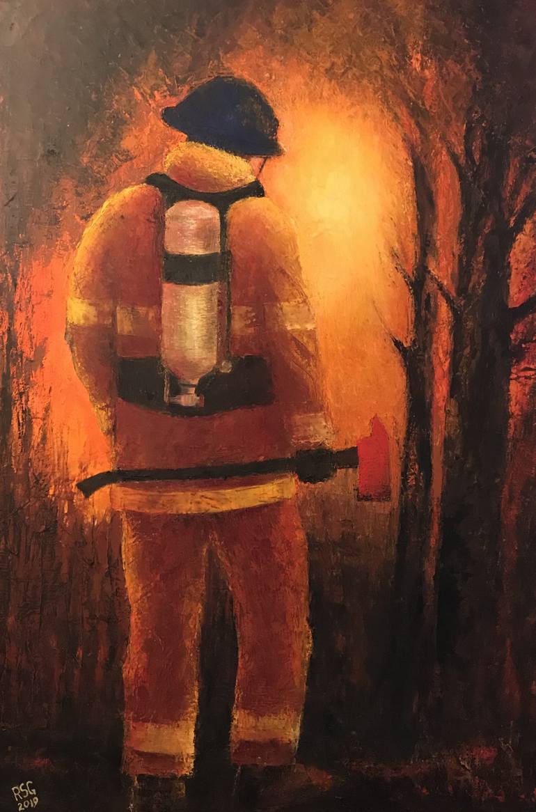This painting is in response to Donald Trump's denial of global warming. It is an in-your-face statement that global warming is real and our planet is nearing the tipping point.