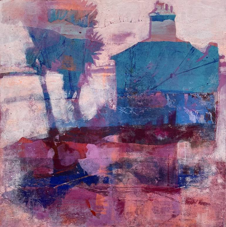 inspired by memories of a holiday and the joy and comfort of coming home. I build layers using stencils, rubbing back and layering to create translucent effects to evoke memories.