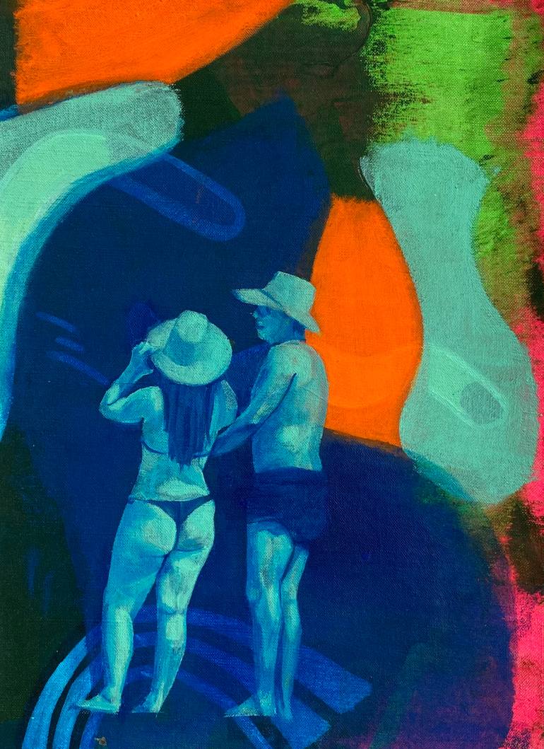 My artistic approach focuses on the representation of memories and recollections, mainly using paint on canvas and paper. I explore themes such as the passage of time and the effect of color on emotions. My style is characterized by its reality, its graphics, its vivid colors, its dreamlike, nostalgic and poetic aspect. My main source of inspiration comes from photos I take personally, from memories and vacations, but also from photos of unknown people I find on social networks. These moments in life are transposed onto canvas. Portraits, bathing scenes, solitude and memories of personal significance that have influenced my career are recurring themes in my work. By using social and cultural contexts in my work, I seek to convey the memory of my time, to leave a reminder of my daily life and that of unknown people.