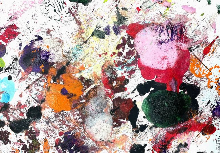 "Holy Moly 2" is a small, abstract artwork on paper. It is dynamic and has parts of monotype-style. It's a real happy painting and - although it's small - brings a positive and happy mood to any room. The main colors are pink, green, orange and white. The size of the painting is 21 x 29.7 cm / 8.3 ...