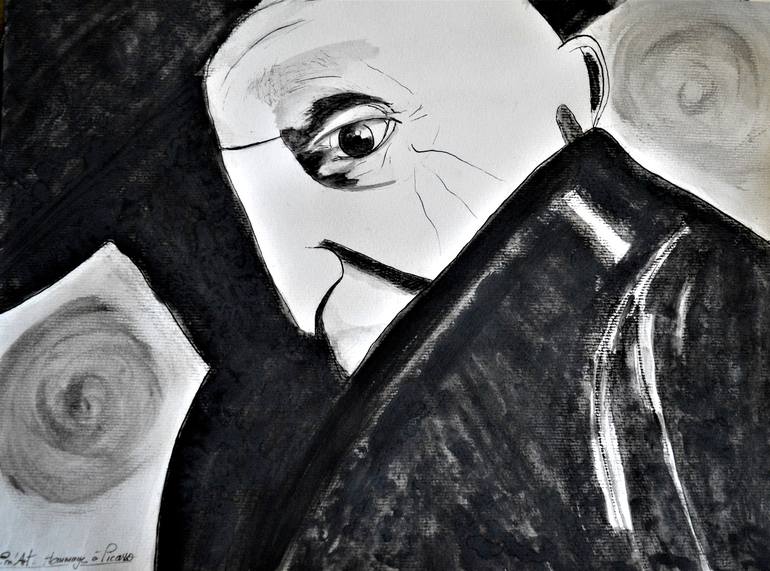 Reproduction of a photograph of Picasso by photographer Irvin Penn. A tribute to the great artist Pablo Picasso. Charcoal drawing on paper 30 x 40 cm. Matt varnished finishing. Not framed. Dated and signed on the back. Certificate of authenticity. Shipping in 24 hours.