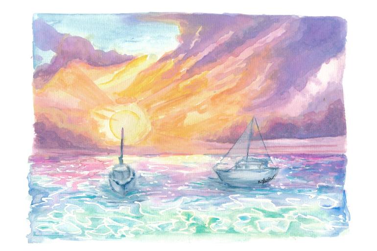 Honeymoon Sunset Sail in the Florida Keys - watercolor on paper
