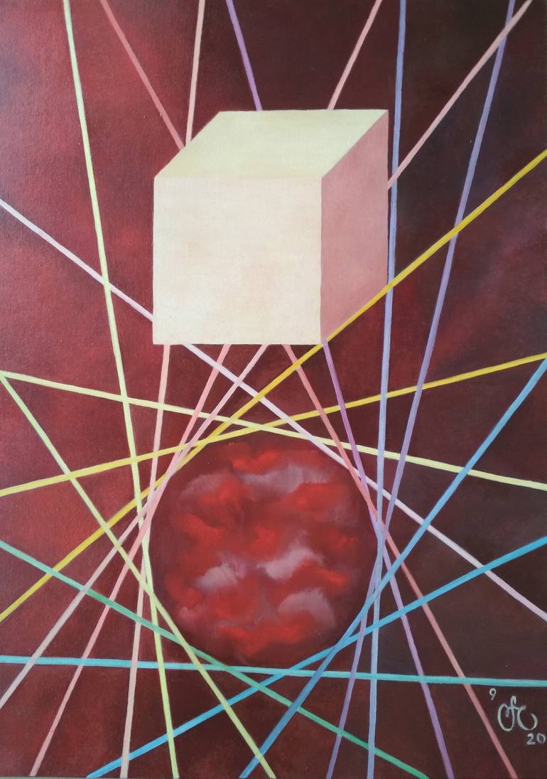 The Cube used to be along, he is looking for an opportunity to get to know the figure from the lines but does not know how. the flashes that arise there, in the very middle of it, give him hope to find love. Signed on the front and back, the ends are painted in the color of the image, can be used un...