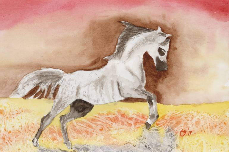 Equus ferus caballus All horses move naturally with four basic gaits: the four-beat walk, the two-beat trot or jog, and the leaping gaits known as the canter or lope , and the gallop Besides these basic gaits, some horses perform a two-beat pace, instead of the trot. Pure watercolors on Fabrian...