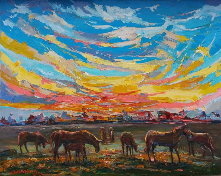 The sunrise enchants with the quiet melody of life. This melody pours from the very depths of the earth, nourishing silk grasses, scattering fluffy morning clouds and quiet horses in the meadow.