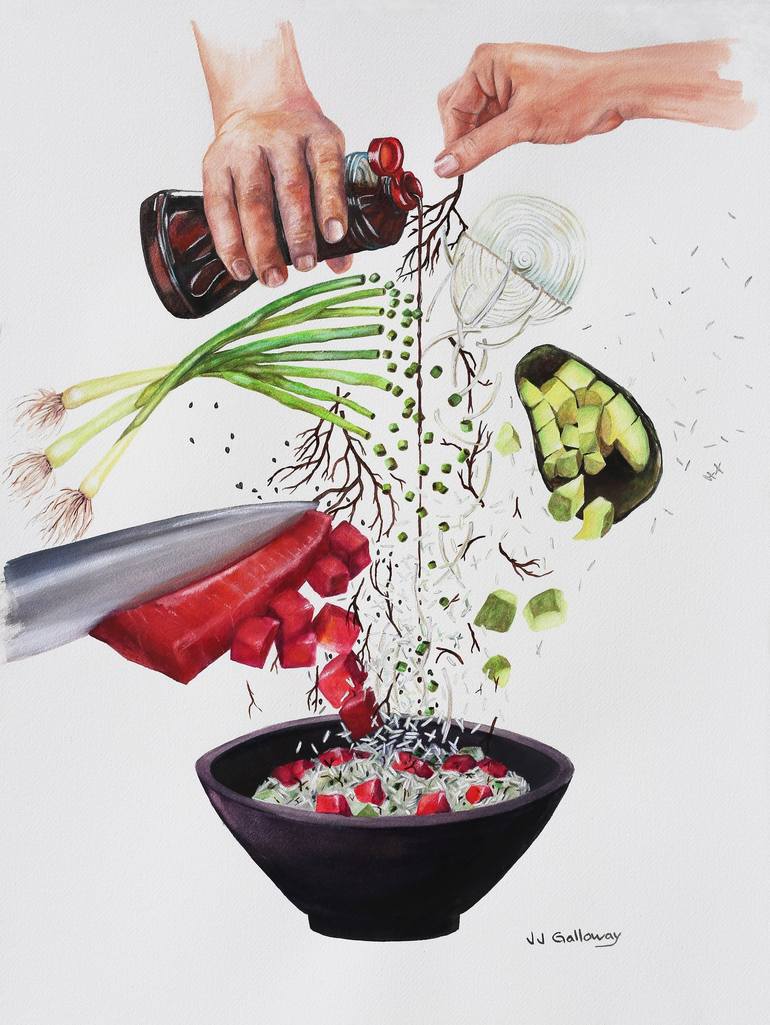 Jill J. is an internationally collected artist known for whimsical paintings and sculptures of people, animals and food or any combination of the three! Carefully executed in a traditional style using oils, watercolors or mixed media; Jill’s art can be found in both public and private collections world-wide. After graduating college with a dual degree in Fine Art and Marketing, Jill spent 10 years in the public relations world. Her first job as a string reporter for CBS News and finishing her executive career running the PR Departments at the National Aquarium in Baltimore and on the board of the American Zoo and Aquarium Association. It was in these later jobs where Jill gained her love and appreciation for wild animals and their conservation. The inspiration for combining animals and food comes from her daughter’s childhood habit of putting the first bit of every meal on top of her head, like a crown. “My paintings make people feel happy and often nostalgic. I paint food and animals with foods to bring a little humor into art collections. A culinary crown makes perfect sense!” Jill regularly participates in shows in major cities including NY, London, Miami, Chicago and LA. She has a queue for her culinary animal commissions. When Jill’s not in the studio, she’s at the Smithsonian where she leads lectures both in the galleries and virtually to hundreds of participants globally. She also acts as a mentor for many emerging artists as they begin their fine art businesses. Jill resides in the Annapolis, Maryland area of the United States.