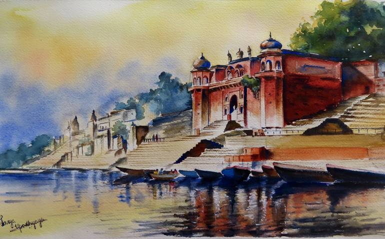 Painting of the timeless beauty of Ganga ghat at Varanasi, India