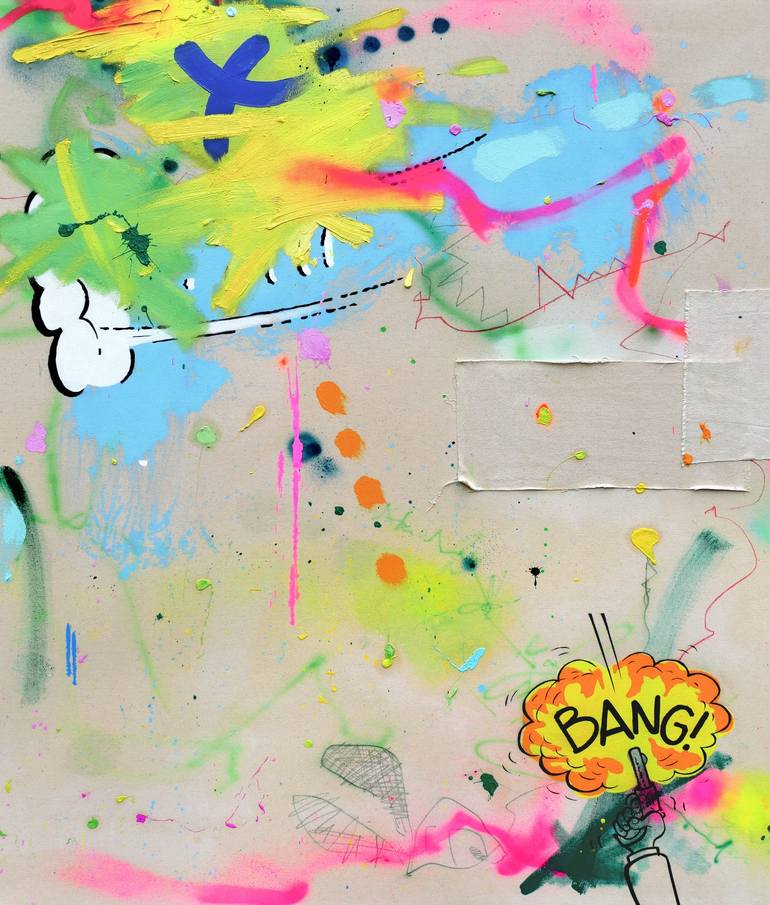 James Tebbutt was born in Northampton, England in 1980. In 1998 he went to The University of Northampton to study a Foundation Course in Art & Design. After finishing the course James moved on to Coventry University to complete a BA (Hons) in Fine Art, where he specialised in painting. Since finishing his degree, James has continued to paint, producing a steady stream of work and continually developing his practice whilst taking part in various shows around the country and completing numerous commissions for magazines and private as well as corporate clients. He works as an Architectural Assistant to pay the bills and paints the rest of the time! My paintings are usually large scale works using acrylic and oil and combine influences from "high culture" including abstract expressionism and post-modernism and "low" pop culture including street art, urban environment, cartoons and design. "Like many forms of contemporary music, James paintings appear to be sample based. Not only do visual references appear from a wide range of sources, which include amongst others, cartoons, art historical, news media, design, advertising and consumerism but the method in which these images are portrayed also varies in an attempt to explore the relationship between them. Expressive shapes, marks, colours and other elements are overlaid and contrasted with one another with an ever-increasing dialog between abstraction and figuration. This dialog seems just as important to James as the dialog between the other, more figurative elements. The paintings are created with a kind of stream of consciousness, not only in the choice of imagery and the way in which this imagery is represented but also in the creation of the composition itself. This unplanned, improvised nature in which the paintings are created shares similarities with the methods of abstract expressionism. All in all James paintings are an attempt to reconcile the visual world around him.""James recent work demonstrates his ongoing exploration of the medium of paint. Varying styles of paint application the drip, the splatter, the expressionistically painted, the flat, the cartoon like, the smooth, the rough, all created with different types of paint jostle for a place on the canvas.