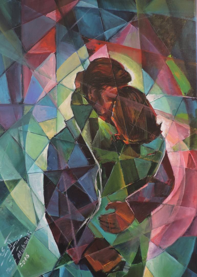 They hug each other. Once again this theme attracted me, still to find the appropriate style that I then find in the process of the work which lasted almost one week, but to mention, I spend usually a lot of time examining the composition making few changes her and there. This work is loose, and wil...