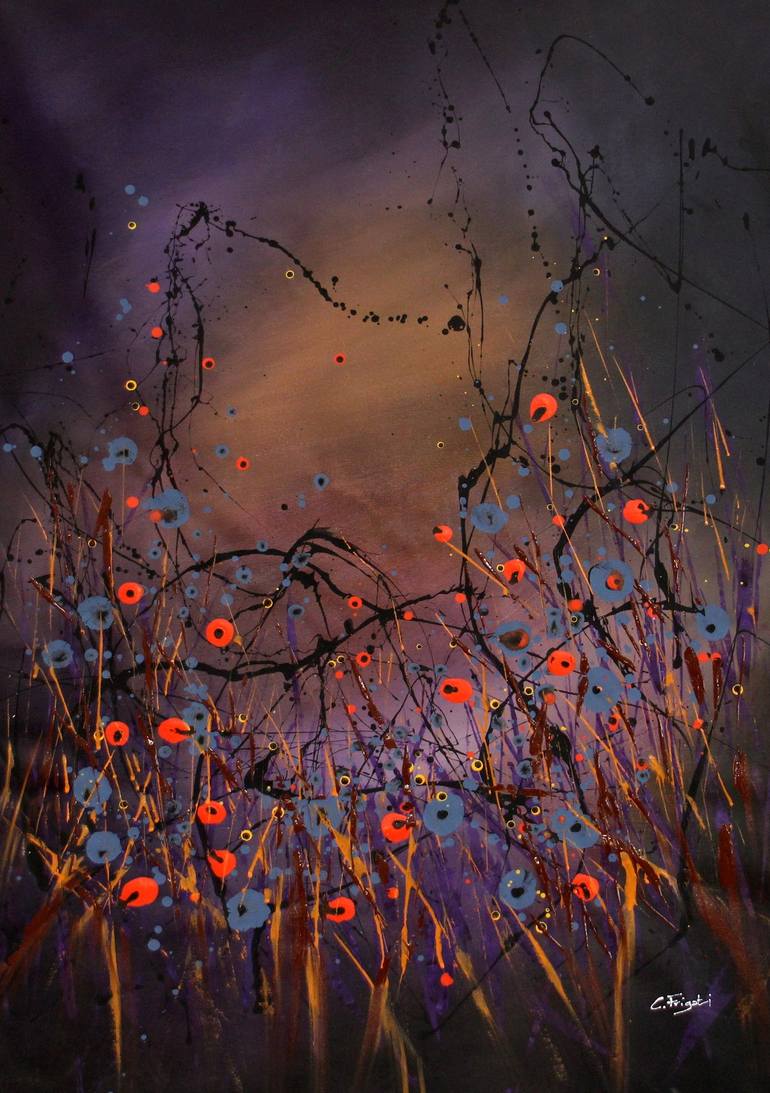 Cecilia’s artworks are lively and buoyant with explosions of colours and freedom which mirror the intensity of her own view of the natural sceneries. She is a real creator and inventor always seeking new forms of art and techniques to express her inner self. Her paintings generate from memories and visions that flow onto her canvas instantly leaving enough freedom for the viewer for their own interpretation. She specialises in large contemporary atmospheric landscapes and super-sized floral compositions using her unique abstract techniques as well as more organic and intimate abstractions. Her large scale paintings combined with her unique free-flowing abstract techniques have brought her great recognition and her works have been selling all over the globe to private collectors and for interior design projects. Born and raised in Italy but upon receiving her degree in Painting from the Bologna’s illustrious Accademia Di Belle Arti Cecilia moved to London,UK and over the years she established herself as a full-time independent artist. Currently lives and works in rural Hungary where she solely focuses on her art practice. She is a very approachable character and enjoys engaging and working closely with her clients let them be private home owners or interior design specialists.