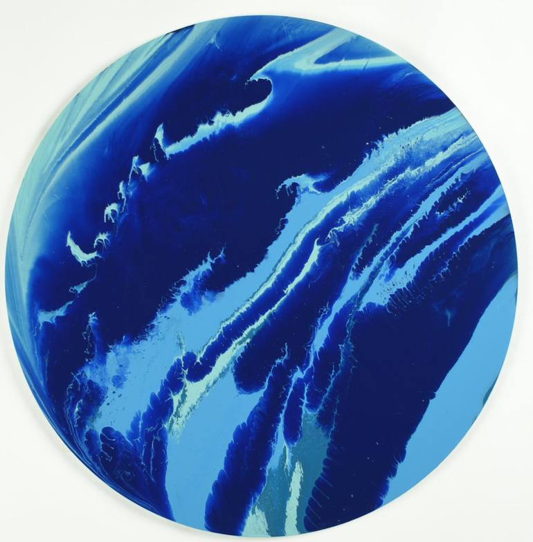 This is a circular painting inspired by views of our planet. The paint swirls in dynamic patterns that mimic the energy of a hurricane. In creating these works I seek a balance between movement and stillness, substance and illusion. I have been inspired by the nature paintings of Keith Tyson and t...