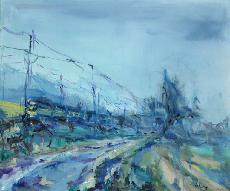 The work is inspired by the places around me. Station, train, rail are eternal inspiration for artist. Shadows are bigger as twilight is coming.Light is cutting approaching night.