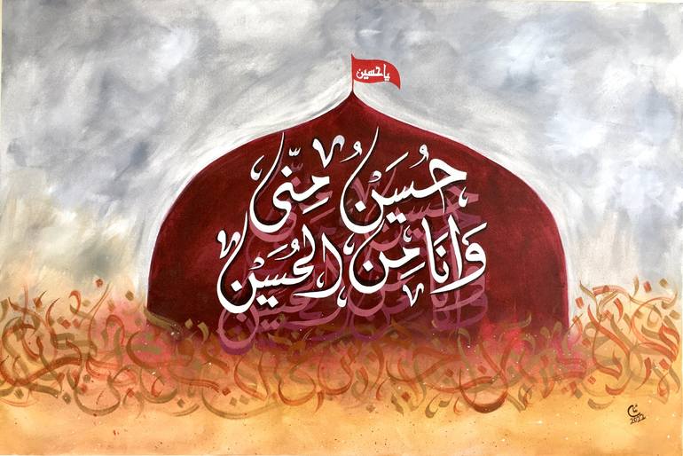 Prophet Muhammad (PBUH) said: “Hussain is from Me and I am from Hussain, Allah swt loves whosoever loves Hussain” Original Modern Calligraphy Painting 2022