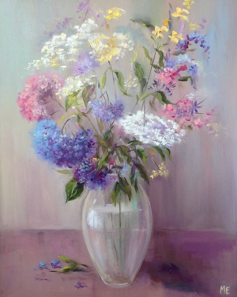 Flowers give us the joy of life, but their own lives are short and short-lived. My favorite quote from Frida Kahlo: "I draw flowers so they don't die." Painting "Hydrangeas smell like summer" size 40x50 cm, waiting for its owner. #ElenaArtstyle
