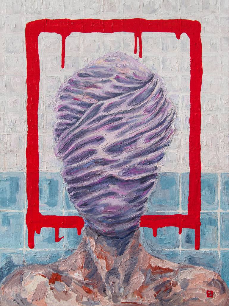 In an attempt to further abstract and understand the human face during a period of particular frustration, I had a model allow me to wrap her head with a thin scarf. The absence of features was really doing it for me and got me back in the bucket.