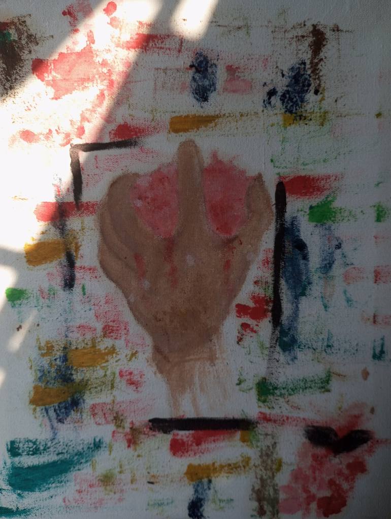 This painting tells the story of a hand that may be wounded, yet from that wound, a flower grows as a symbol of strength and hope. Amidst the pain it endures, this hand continues to firmly grasp all the emotions that come, both bitter and sweet, blending together in the surrounding colors. Each bru...